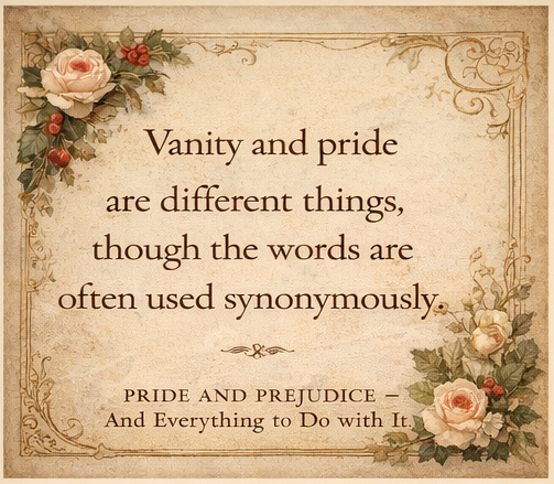 That sentence – "Vanity and pride are different things, though the words are often used synonymously" – appears in Pride and Prejudice during one of Mary Bennet's earnest moral pronouncements. As is frequently the case with Mary, she is both correct and slightly missing the point – and Jane Austen, with her quiet irony, lets us see more than the...